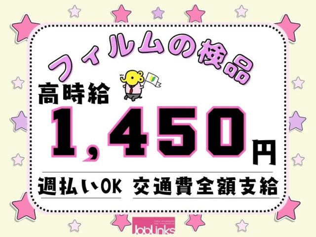 【尼崎市】資格不要!高時給なのに、超かんたんフィルムの検査☆【06-017-002】時給 1,400円~(一般基本給・賞与・能力給・退職金含む)+ 交通費