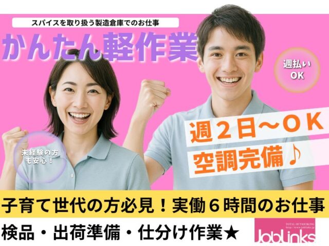 週2日~OK♪空調完備のかんたん軽作業スタッフ【06-NS-02】時給 1,230円~ + (一般基本給・賞与・能力給・退職金含む)+ 交通費 -