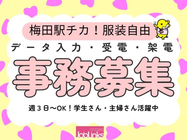 【駅チカ直結】学生・主婦活躍中!週3日~OK!梅田でオフィスワーーーーク!【06-065-100】時給 1,320円~(一般基本給・賞与・能力給・退職金含む)+ 交通費 -