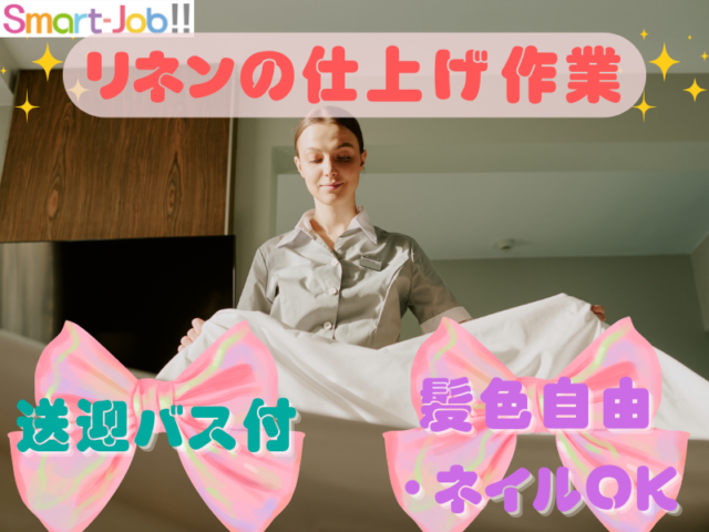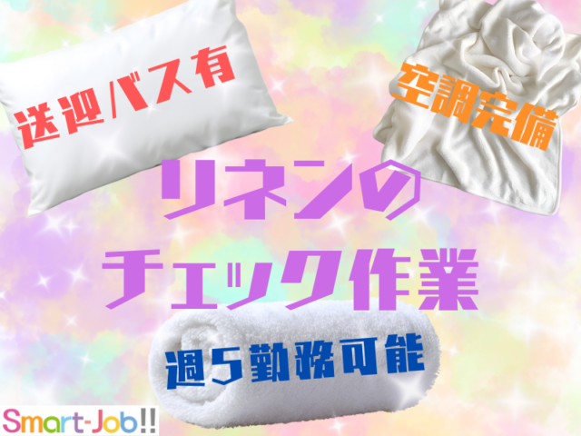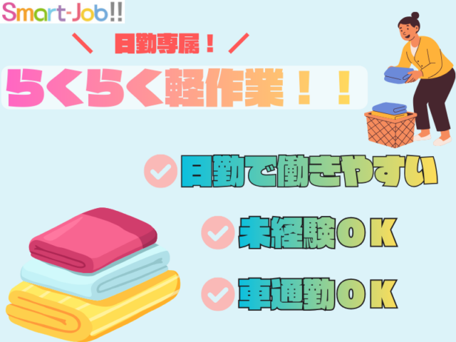 【城陽市】\送迎バス有!/安定ワーク&日勤のみ=リネンの仕分け軽作業♪【105-003】