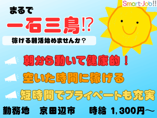 【京田辺市】週3日~OK!早朝で生活にゆとりを◎柔軟シフトOK!【JLK-041】