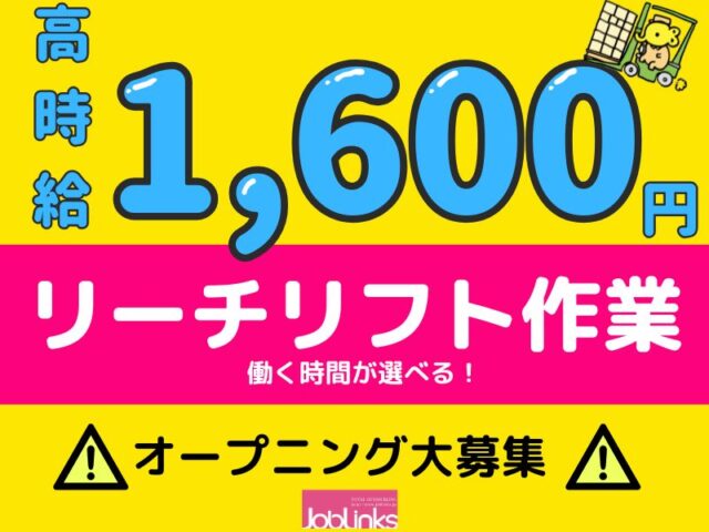 【高時給1,600円】オープニング募集☆週3日~OK・働く時間が選べるリフト作業☆【06-KTWMDC】