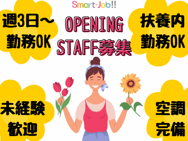 社会保険完備交通費支給週3~OKシフト制友達と応募OKオープニングスタッフ -