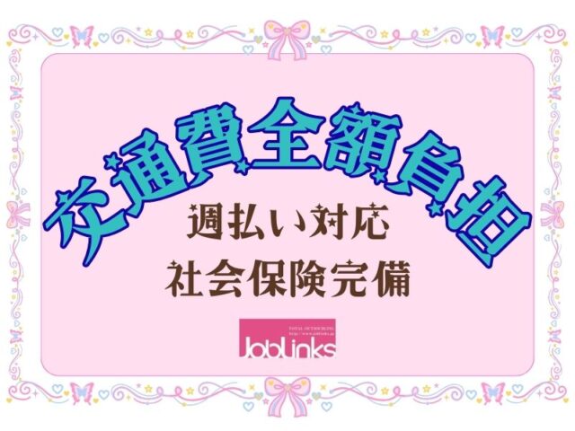 ♪ 待遇:高時給!交通費支給&無料駐車場あり