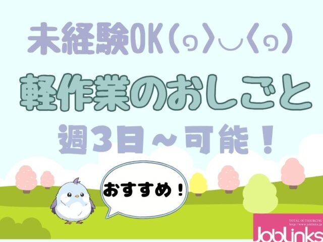未経験歓迎♪週3日〜OK!軽作業スタッフ募集♪【10-Flo-11】